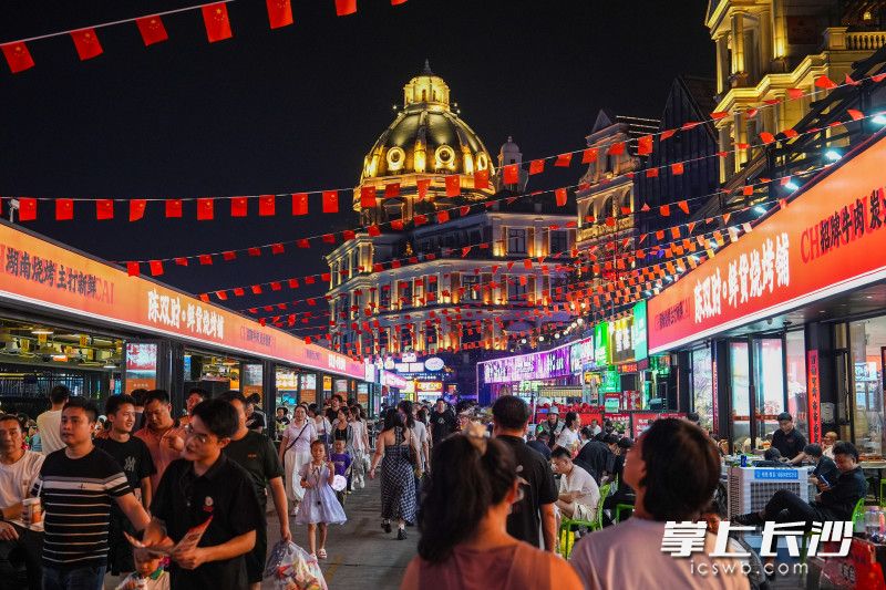 10月7日晚,渔人码头400多米的街道上灯火通明,夜市里的螃蟹、小龙虾、烧烤,组成了最热闹也最抚凡人心的烟火气。国庆中秋假期,来自全国各地的食客来到渔人码头,享受美食,欣赏湘江夜景,体验长沙惬意的夜生活。 长沙晚报全媒体记者 郭雨滴 摄
