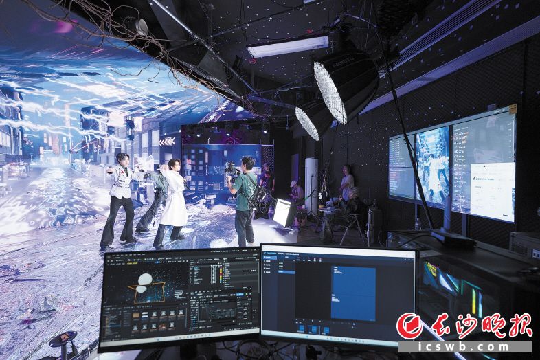 9月25日傍晚,在位于马栏山的二年级传媒,一场使用XR技术的团播正在进行。文/图 长沙晚报全媒体记者 黄启晴