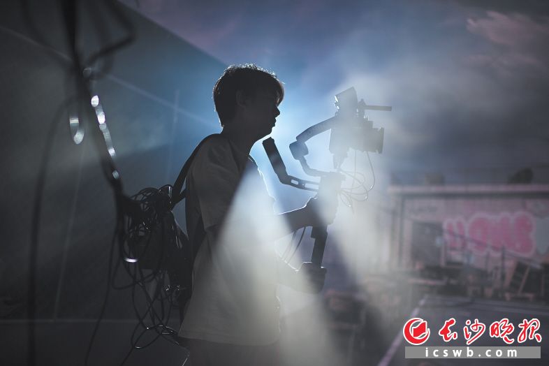 在团播里,媲美综艺的运镜师也是最让人好奇的岗位。图为做过综艺摄像师的张亮正在烟雾中运镜。