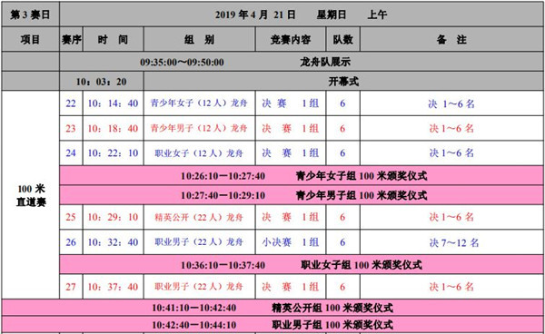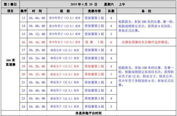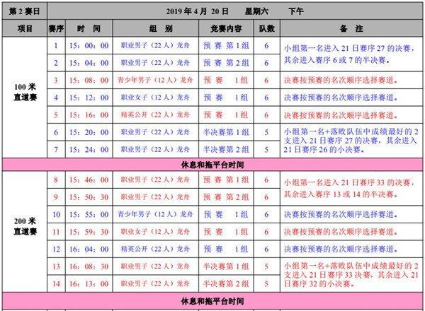 与往年相比,今年龙舟大赛有四大创新。项目设置上,除100米、200米、500米的常规项目设置外,今年新增一千米折返赛项目。奖金设置上,从去年的150万增加到了160万。赛程设置上,比赛的日程从原来的三个半天调整为到四个半天,包括4月19日下午、20日全天、21日上午这三天。