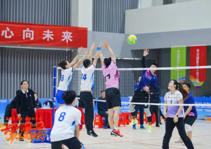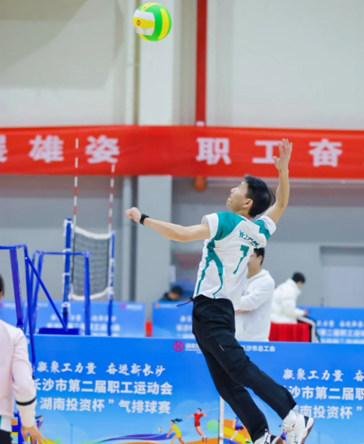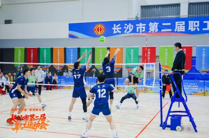 当天,长沙市第四工人文化宫内掌声和欢呼声不断,长沙市第二届职工运动会的收官赛事——气排球赛迎来巅峰对决。发球、接球、弹跳、扣杀……职工选手们铆足干劲、奋力一搏,向冠军冲刺。