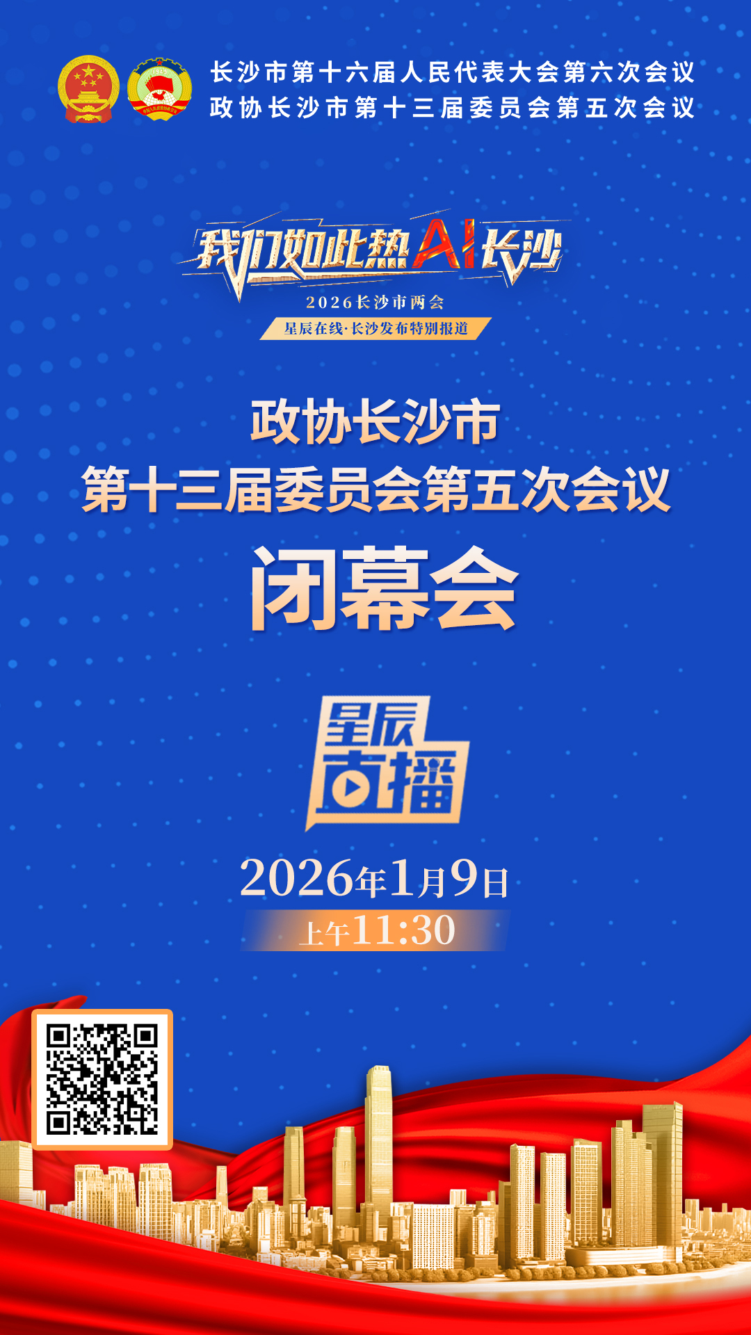 星辰在线1月8日讯(星辰全媒体记者 文春燕)中国人民政治协商会议长沙市第十三届委员会第五次会议闭幕会将于1月9日上午11:30举行。届时星辰在线、长沙发布将全程进行视频直播,欢迎广大网友准时收看。