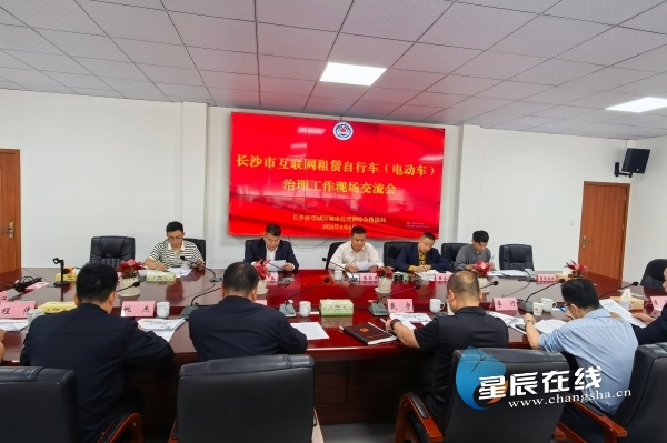 (4月8日下午,长沙市互联网租赁自行车治理工作现场交流会举行。)