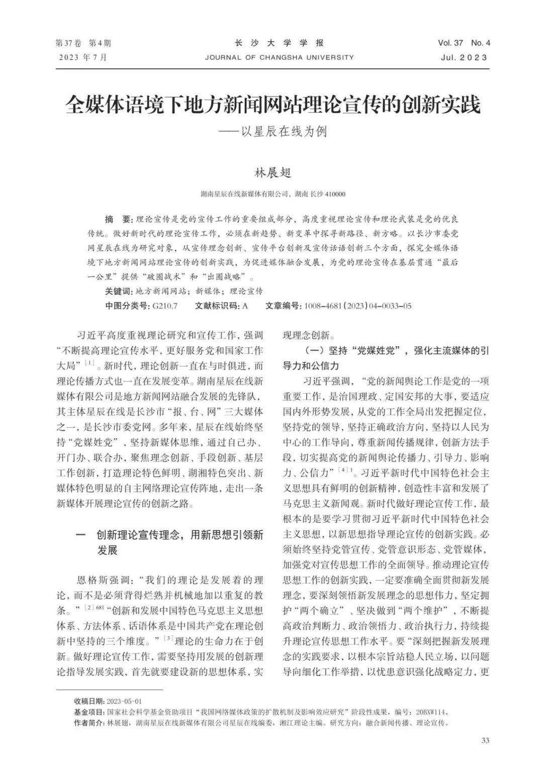理论研究 | 林展翅:全媒体语境下地方新闻网站理论宣传的创新实践——以星辰在线为例